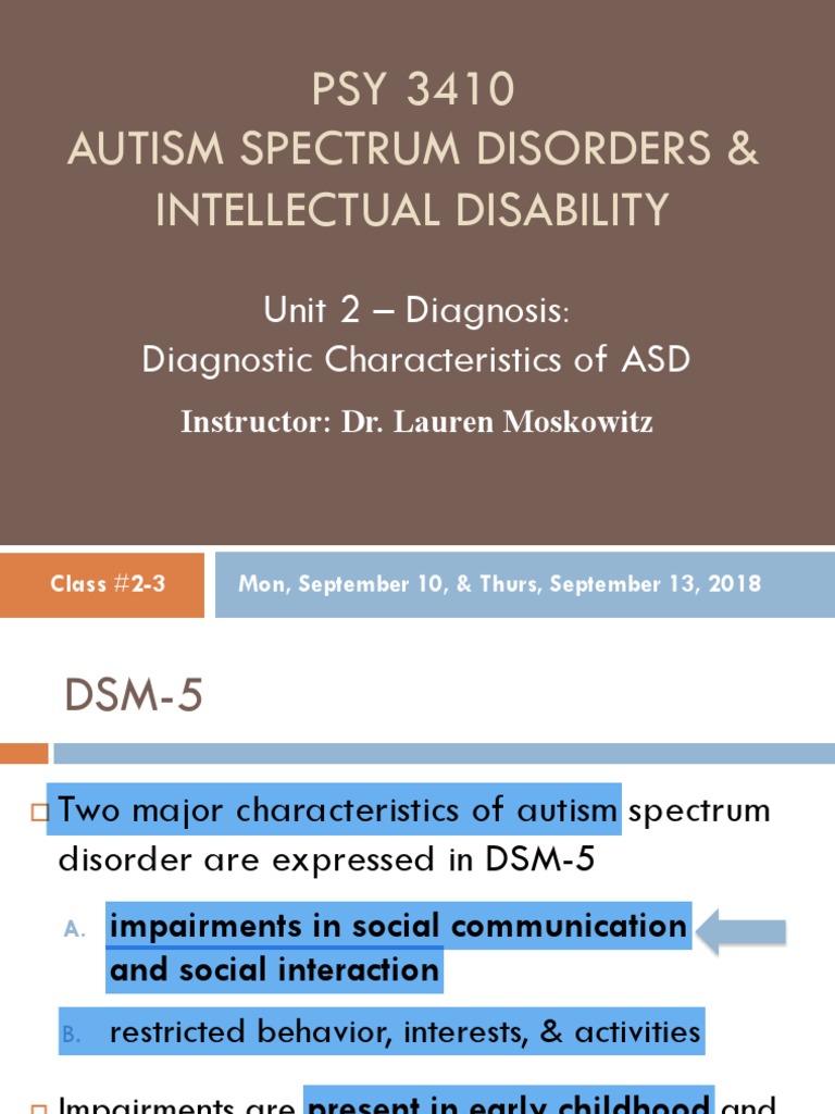 Social communication and interaction must. To make comorbid diagnoses of autism spectrum disorder and intellectual disability, social communication should be below that expected for general developmental level. Grzadzinski r, huerta m, lord c (2013). Dsm is the manual used by clinicians and researchers to diagnose and classify mental disorders. To make comorbid diagnoses of autism spectrum disorder and intellectual note: