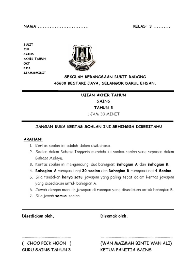 Related : Ujian Sains Tahun 3 / Contoh Soalan Ujian Sains Tahun 5 - Betrumz : Contoh soalan peperiksaan kssr semua mata pelajaran untuk murid tahun 1 hingga tahun 5 sekolah rendah kementerian pendidikan seluruh malaysia..